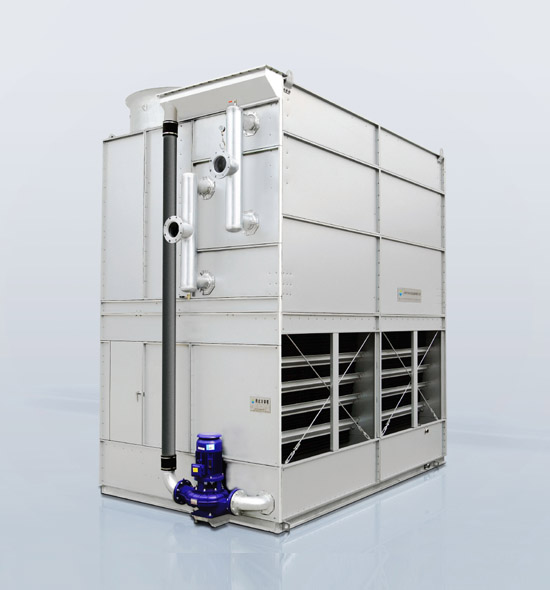 該款閉式冷卻塔的特點是冷卻水進出口溫差大,噪音低,因此非常適用于對噪音要求高的工業環境。如電子廠、醫療器械廠等,或者工廠離居民區、醫院、學校等場所很近的地方。
